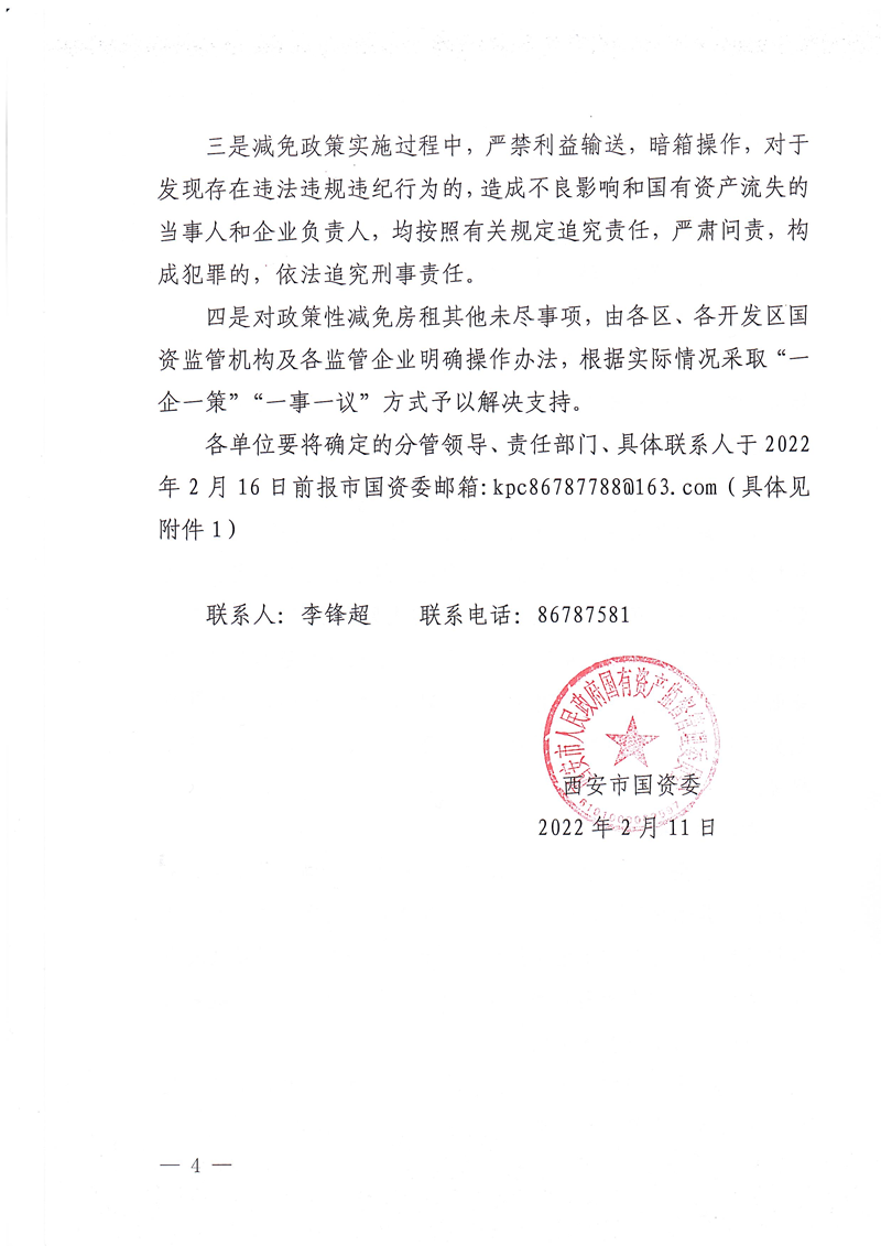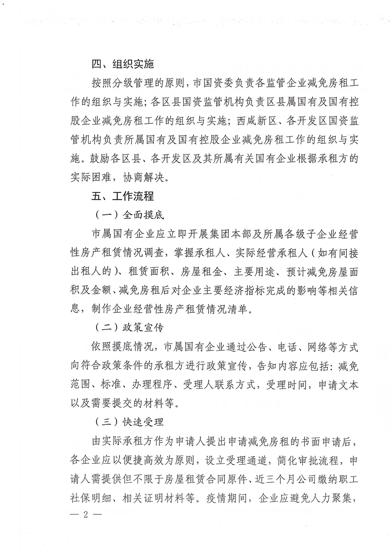 西安市国资委关于做好减免国有企业房屋租金工作有关事项的补充通知